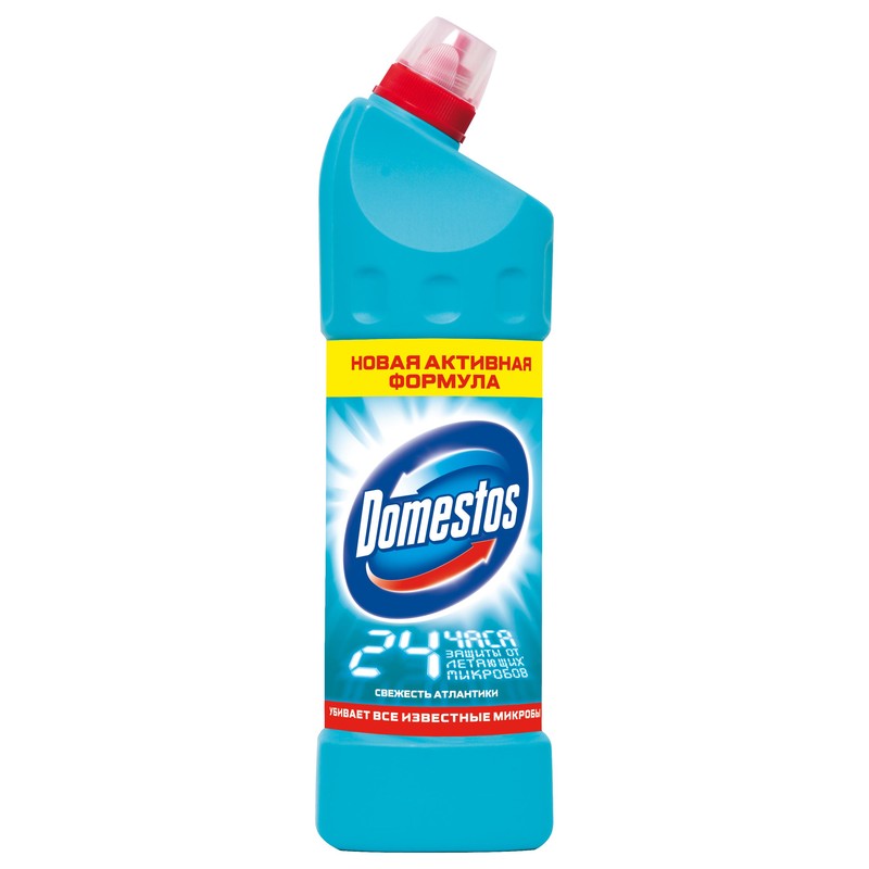 Средство для сантехники Domestos — жидкий гель, предназначенный для очистки и одновременной дезинфекции ванной и туалетной комнат, устранения засоров в трубах и сливах. В разбавленном виде моющее средство может применяться для мытья окон, дверей, полов, кафеля и других поверхностей. При этом бактерицидное действие Domestos остается на высоте — гель уничтожает все опасные для здоровья микробы, бьет по плесени и бытовым грибкам. Поставляется в упаковке объемом 500 мл. Состав Domestos: вода, натрия гипохлорит, ПАВ, силикат натрия, парфюмерная композиция, стабилизатор.