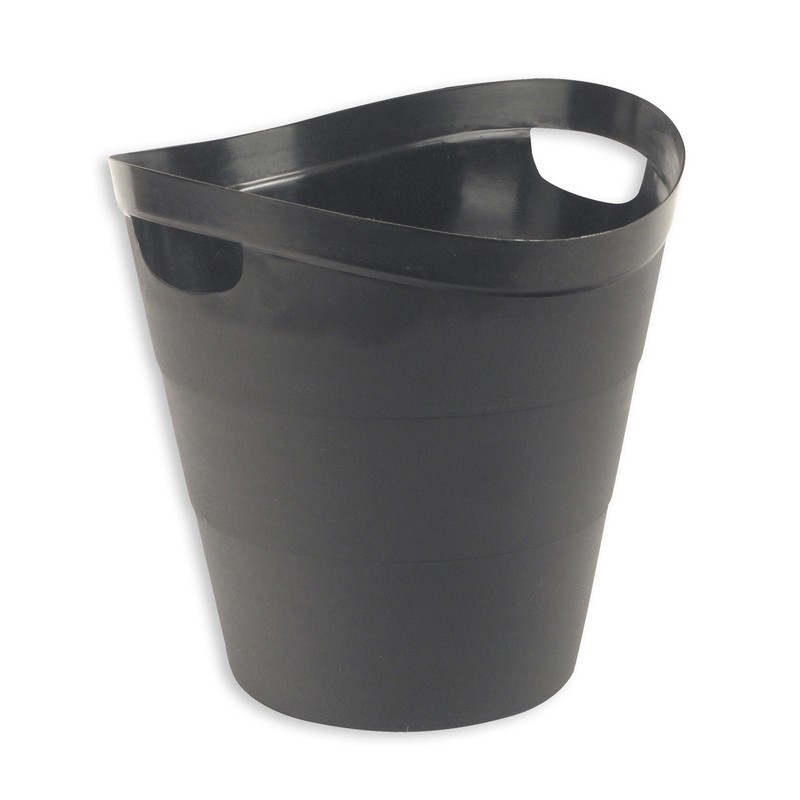 Пластиковая корзина для бумаг вмещает 12 литров. Выполнена из пластика черного цвета. В верхней части корпуса эргономичной формы имеются удобные ручки. Размеры офисной корзины: высота — 30 см, верхний диаметр — 29 см, диаметр дна — 19 см.
