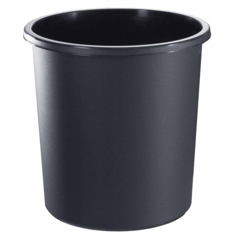 Офисная корзина для мусора вместимостью 18 литров выполнена из пластика черного цвета. Корпус имеет шероховатую поверхность. Размеры корзины для мусора — 31×32,5 см.
