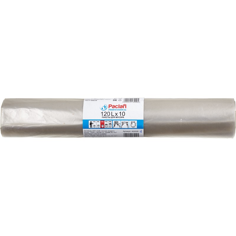 | Пакеты для мусора Paclan Professional 120л 10шт 25мкм ВД прозрачн. |