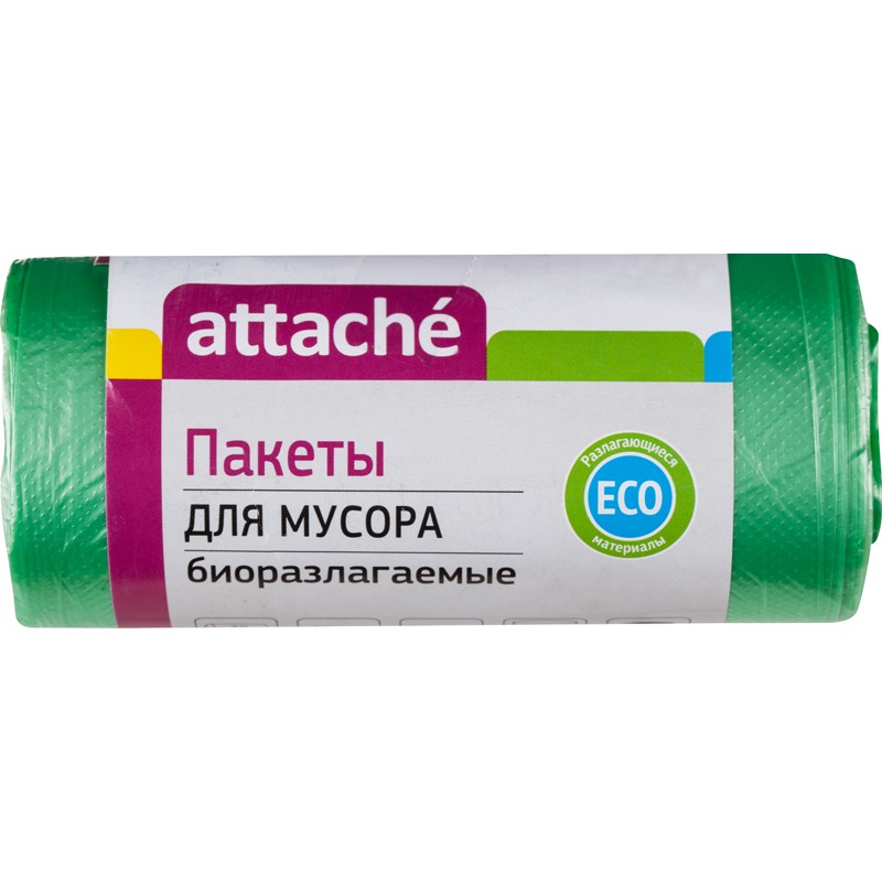 | Пакеты для мусора Attache биоразл. 30л, 50*60, 10 мкм, НД, зел. 30 шт./рул. |