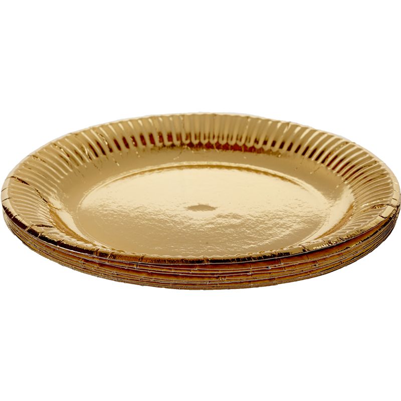 Одноразовые тарелки Gold изготовлены из формованного бумажного волокна золотистого цвета. Подойдут для выездов на природу, пикников, а также корпоративных мероприятий. Материал тарелок экологически безопасен, не выделяет токсических веществ при взаимодействии с горячей пищей, не является средой для развития болезнетворных бактерий. Диаметр — 23 см. В упаковке 10 тарелок, готовых к применению без предварительного промывания водой. Максимальная температура используемых пищевых продуктов — 70 градусов Цельсия.