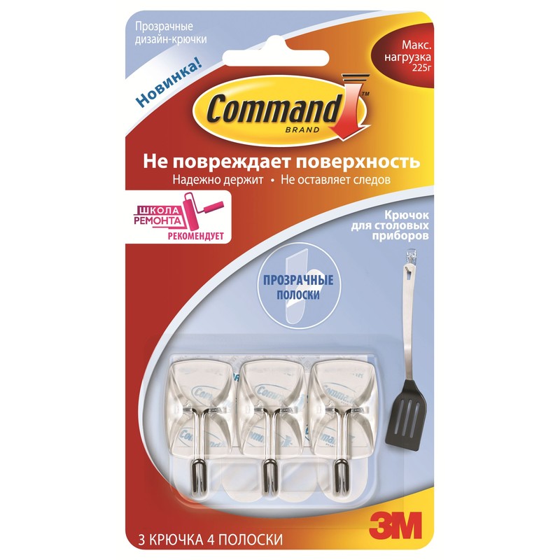 | Крючок Command прозр. д/приборов 225г., 3 шт./4 прозр.пол. |