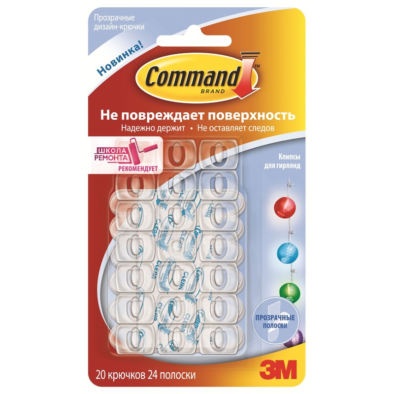 | Набор клипс Command прозр. д/гирлянд 100 г., 20 шт./24 прозр.пол. |