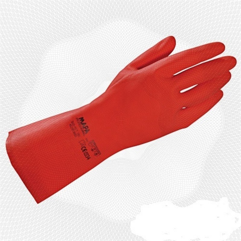 Перчатки Duo-Nit 181 MAPA 8 размера, выполненные из смеси латекса и нитрила, имеют внутреннее хлопковое напыление с антибактериальной пропиткой и рельефную ладонную часть. Перчатки широкого спектра применения характеризуются повышенной износостойкостью и прочностью на прокол, надежным сухим и влажным захватом. Длина изделия составляет 31 см.