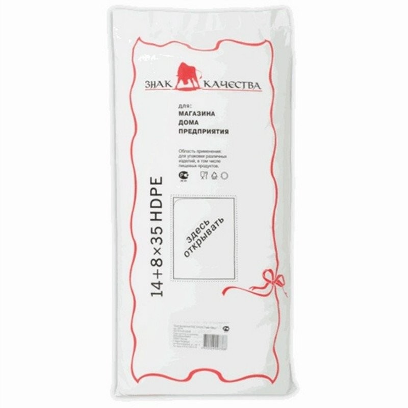 Фасовочные пакеты для пищевых продуктов, изготовленные из полиэтилена низкого давления, разработаны для транспортировки и хранения бутербродов, сохраняют их вкус и свежесть. Длина одного изделия составляет 14 см, плотность — 7 мкм. В одной упаковке содержится 1000 пакетов.