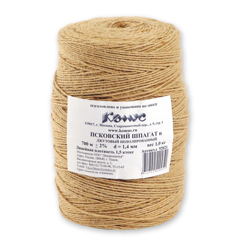 | 92021 Упаков.-полим.матер-лы Шпагат джутовый 1,2 ктекс, 1 кг/боб. |