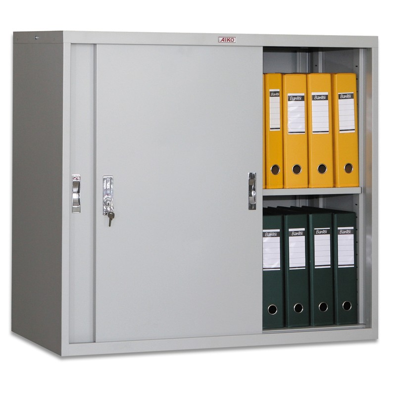 Архивный шкаф-купе (антресоль) Практик изготовлен из металла с порошковым покрытием серого цвета. Размеры — 83,2×91,5 см, глубина — 45,8 см. Раздвижные двери с роликовым механизмом позволяют использовать шкаф в условиях ограниченного пространства. Внутри одна полка, высоту которой можно регулировать. Удобен для хранения архивных папок. Шкаф-купе оборудован ключевым замком.