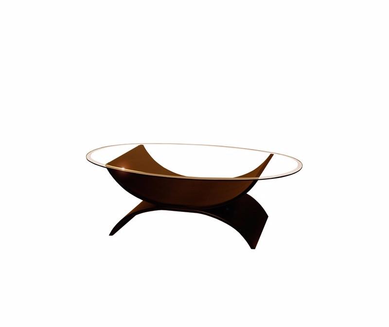 Журнальный стол «Колизей» имеет опору-полку из двух гнутых элементов, изготовленных из деревоплиты (МДФ) со шпоновым покрытием цвета венге. Столешница размером 100×73 см овальной формы выполнена из прочного прозрачного стекла. Высота журнального стола — 36 см.