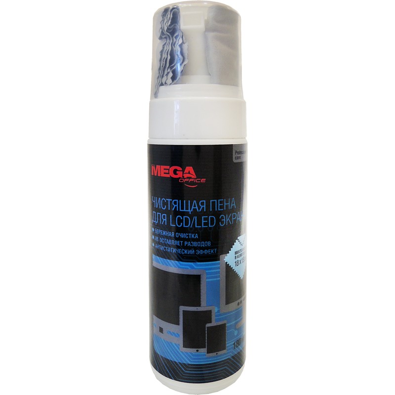 "Чистящая пена предназначена для очистки и ухода за экранами жидкокристаллических (LCD, LED) мониторов и телевизоров, а также плазменных телевизоров. Очищает поверхность экрана от пыли, грязи и отпечатков пальцев. Салфетка из микрофирбры позволяет идеально очистить экран от загрязнений без образования разводов. Обладает антистатическим эффектом.