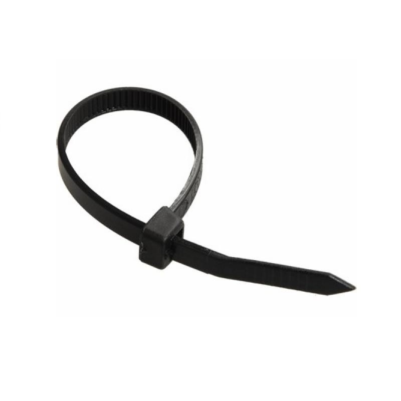 Представленный нейлоновый хомут, иначе называемый кабельная стяжка, имеет черный цвет. Что обусловлено применяемыми в нём модификаторами и наполнителями. Которые, в свою очередь, обеспечивают такие его свойства как: