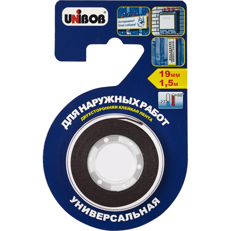 | Клейкая лента двусторонняя для наружных работ Unibob 19мм х 1,5м, черная |