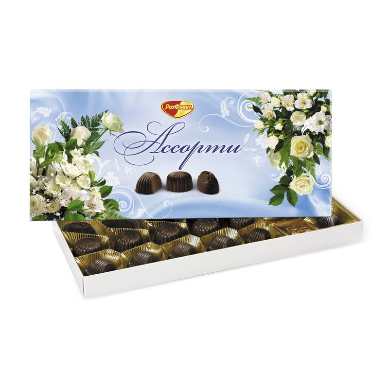 Название торговой марки Рот Фронт Торговая марка Рот Фронт Вес изделия нетто 220 г Тип упаковки картонная упаковка Схема вложения 8 Наполнитель ассорти Страна производства Россия Вид шоколада темный Вид конфет шоколадные конфеты Размер упаковки - Артикул 457201 -