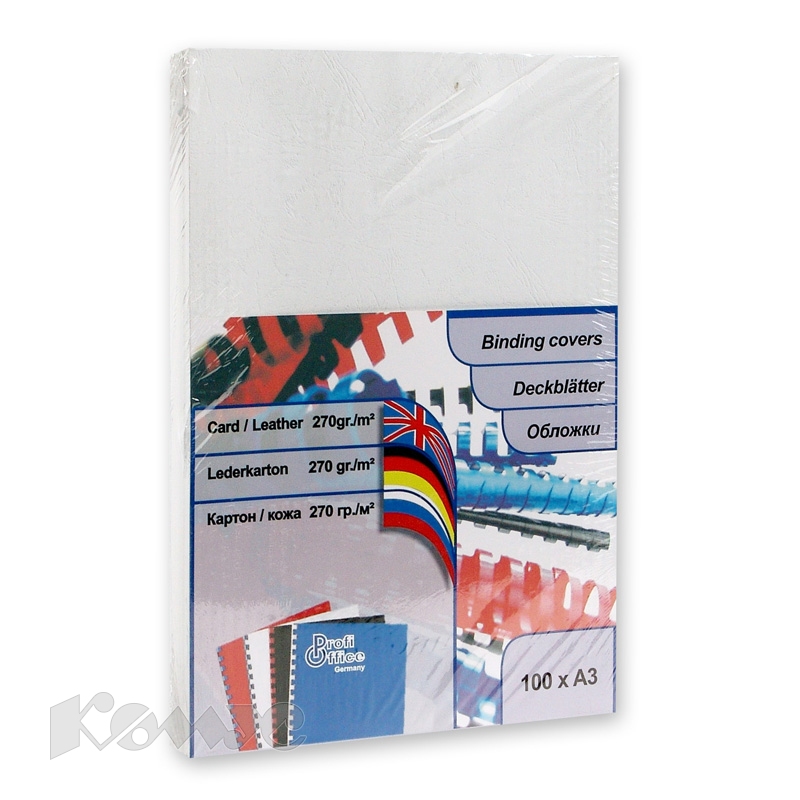 | Обложки для переплета картонные ProfiOffice 100шт./уп. белые Кожа,А3 формат |