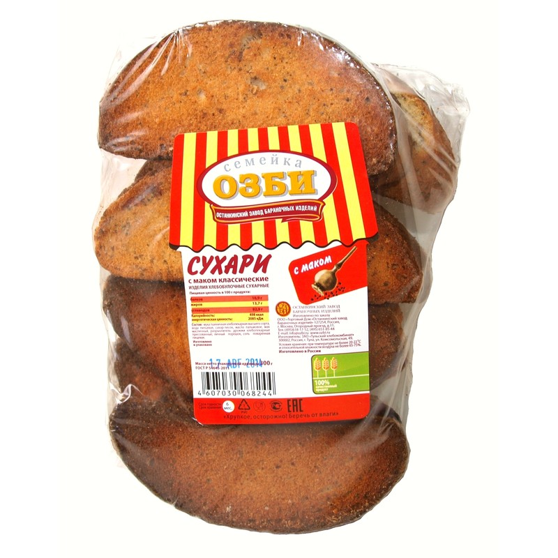 | Сухари с маком классические "Семейка ОЗБИ" 300 г. |