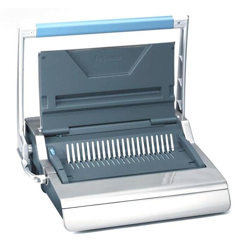 Брошюровщик Fellowes Galaxy для переплета на пластиковую пружину с возможностью механической (ручной) перфорации до 25 листов одновременно. Переплетает брошюру до 500 листов. Оснащен рычагом для перфорации в виде рамки, который позволяет равномерно распределять усилия и получать ровную перфорацию по всей длине листа. Съемный блок для переплета ускоряет процесс создания брошюр — два человека могут одновременно и перфорировать, и переплетать. Встроенный селектор формата автоматически выравнивает листы различных форматов по краю. Также есть селектор диаметра пружин. Брошюровщик оснащен удобным полноразмерным лотком для расходных материалов.