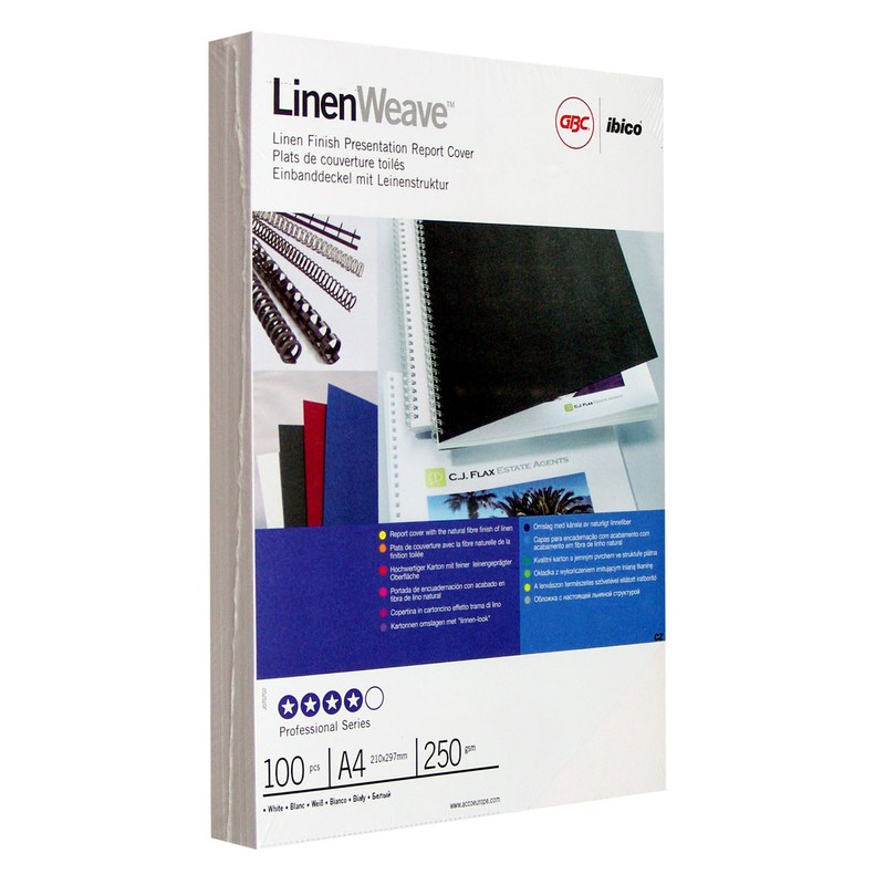 | 129187 Обложки для переплета картонные GBC 100шт/уп белые лен, 250г/м2, А4 |