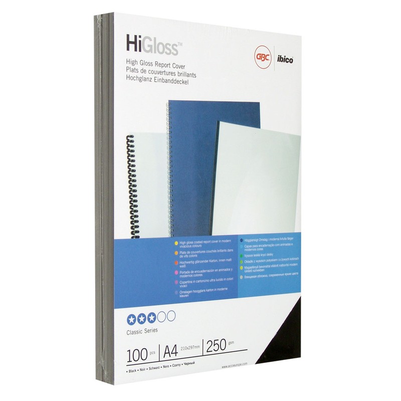 | 129201 Обложки для переплета картонные GBC 100шт/уп черные глянец, 250г/м2, А4 |