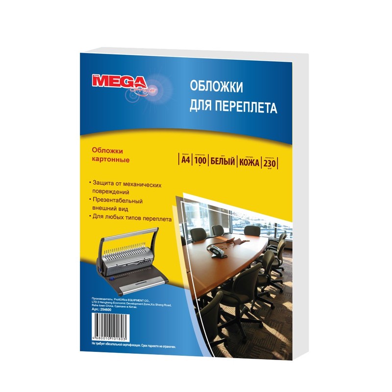 | Обложки для переплета картонные ProMega Office белые, кожа, А4, 230г/м2, 100шт/уп |