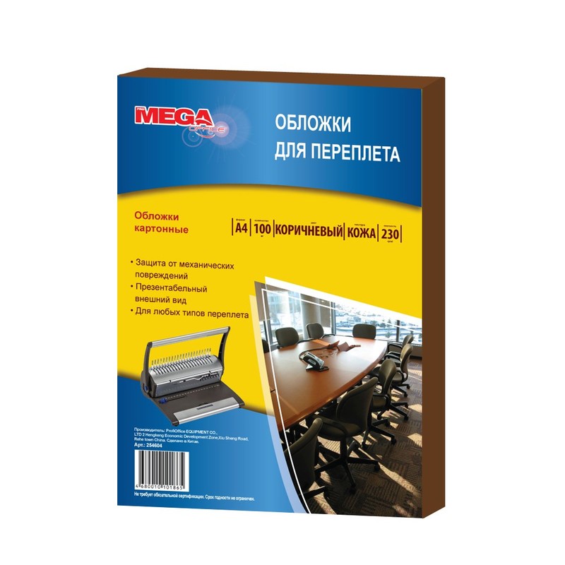 Название торговой марки ProMEGA Office Торговая марка ProMEGA Office Материал картон Формат 216х303 (А4) Страна происхождения Китай Цвет внешней поверхности коричневый Текстура материала кожа Плотность обложки 230 г/кв.м Количество в упaковке 100 шт. Артикул 254604 -