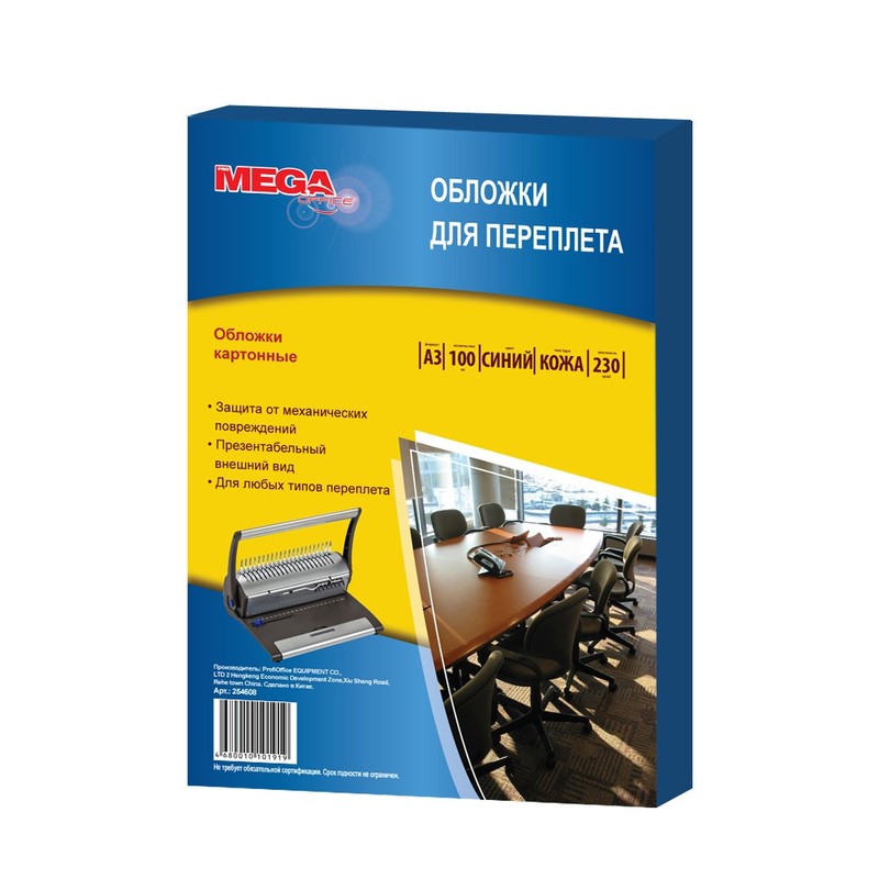 | Обложки для переплета картонные ProMega Office синие, кожа А3, 230г/м2, 100шт/уп |