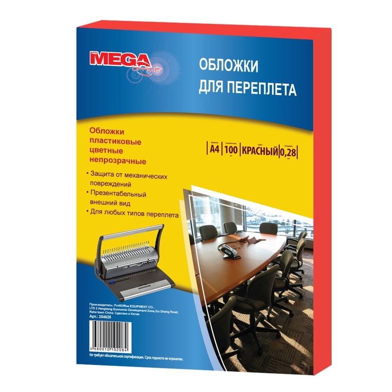 | Обложки для переплета пластиковые ProMega Office красные, непрозр., А4, 280мкм, 100шт/уп |
