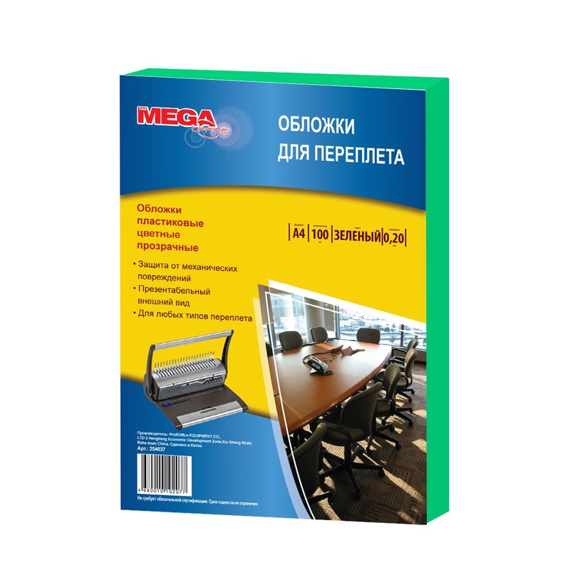 | Обложки для переплета пластиковые ProMega Office зеленые, прозр., А4, 200мкм, 100шт/уп |