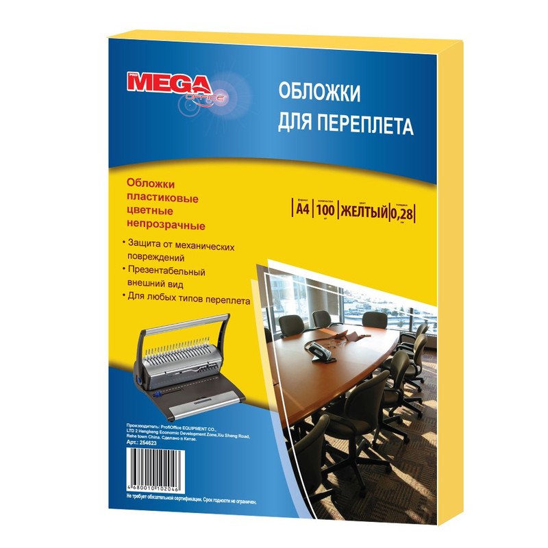 | Обложки для переплета пластиковые ProMega Office желтые, непрозр., А4, 280мкм, 100шт/уп |