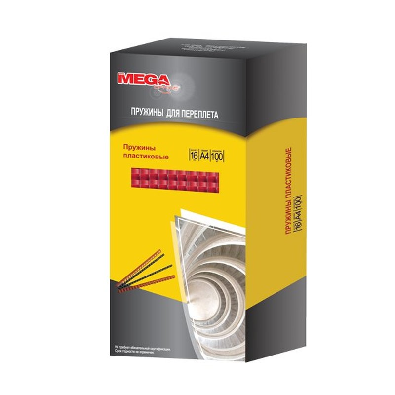 Пружины ProMEGA Office предназначены для сшивания до 145 листов формата А4 при помощи брошюровщика. Позволяют вынимать и добавлять листы в готовый документ. Изготовлены из прочного пластика синего цвета, состоят из 21 кольца диаметром 16 мм, шаг переплета — 3:1. Поставляются по 100 штук в упаковке.
