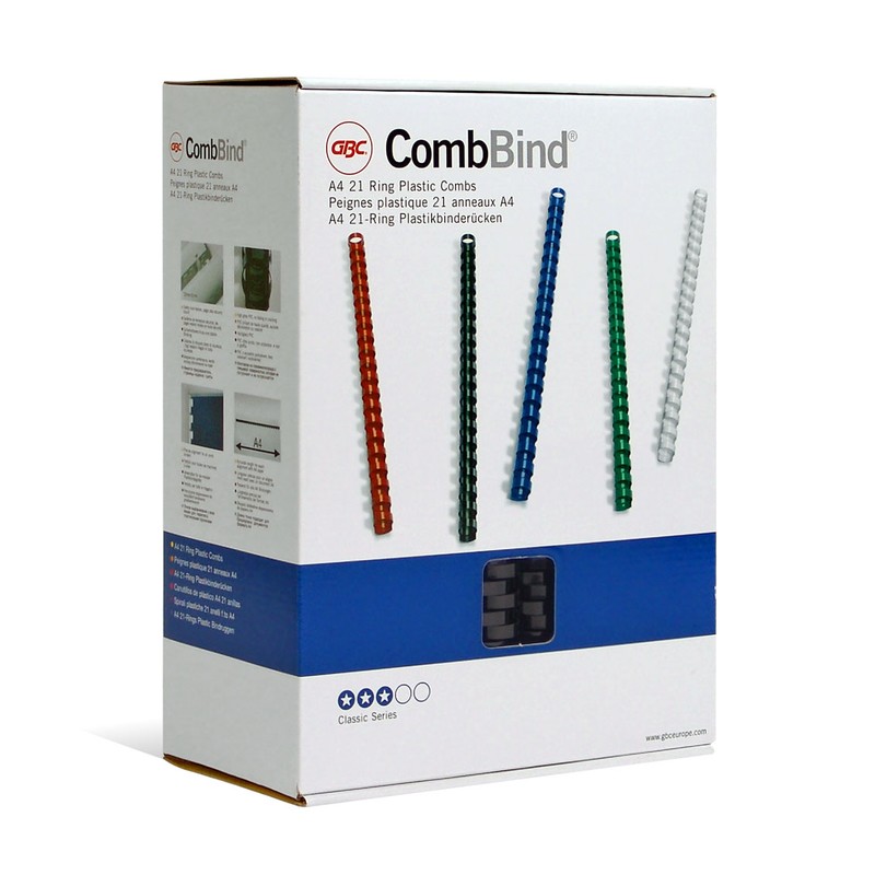 Пружины GBC предназначены для сшивания до 240 листов формата А4 при помощи брошюровщика. Позволяют вынимать и добавлять листы в готовый документ. Изготовлены из прочного пластика черного цвета, диаметр — 25 мм, шаг переплета — 3:1. Поставляются по 50 штук в упаковке.