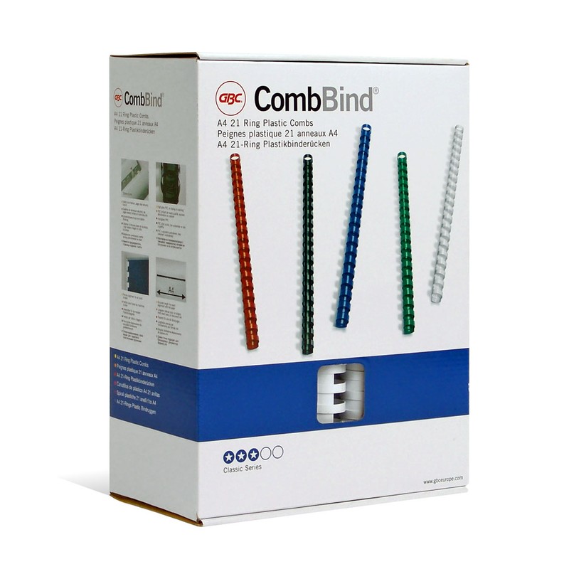 Пружины GBC предназначены для сшивания до 350 листов формата А4 при помощи брошюровщика. Позволяют вынимать и добавлять листы в готовый документ. Изготовлены из прочного пластика белого цвета, диаметр — 38 мм, шаг переплета — 3:1. Поставляются по 50 штук в упаковке.