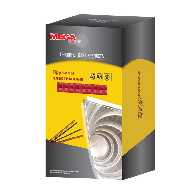 Пружины ProMEGA Office предназначены для сшивания до 440 листов формата А4 при помощи брошюровщика. Позволяют вынимать и добавлять листы в готовый документ. Изготовлены из прочного пластика белого цвета, состоят из 21 кольца диаметром 45 мм, шаг переплета — 3:1. Поставляются по 50 штук в упаковке.