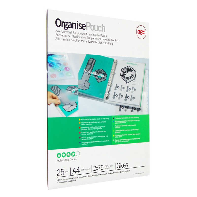 Заготовка для ламинирования GBC предназначена для работы с документами формата А4. Толщина одного листа — 75 мкм, поверхность глянцевая, при этом отпечатков пальцев не остается. Имеет перфорацию, что позволяет подшивать готовые документы в специальные папки. Ламинирование надежно защищает от влаги, пыли и загрязнений, позволяя сохранить легкость и гибкость, придает стильный внешний вид. Упаковка содержит 25 штук.