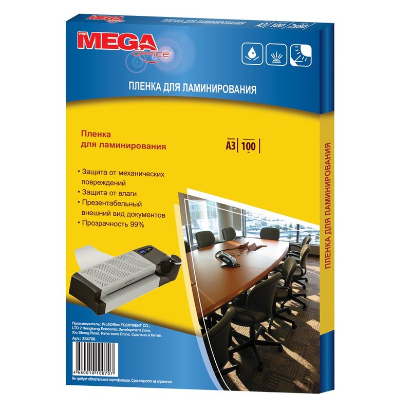 Название торговой марки ProMEGA Office Торговая марка ProMEGA Office Формат 303х426 (А3) Страна происхождения Китай Схема вложения 5 Толщина материала 100 мкм Свойства материала глянцевые Максимальный формат ламинирования А3 (303х426 мм) - Артикул 254707 -