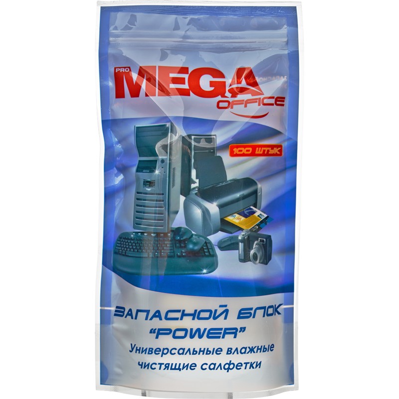 Универсальные влажные чистящие салфетки ProMEGA Office Power. Влажные салфетки используются для удаления пыли и грязи с поверхностей оргтехники и офисной мебели. Очищают, не оставляя разводов. Универсальные чистящие салфетки обладают антистатическим эффектом. В упаковке 100 штук.