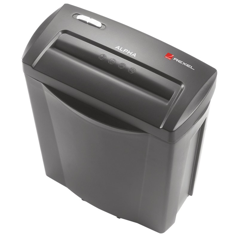 Уничтожитель документов Rexel Alpha X. Шредер выполняет резку личных и конфиденциальных документов на мелкие фрагменты, похожие на конфетти, что обеспечивает дополнительный уровень секретности и позволяет реже опорожнять корзину.