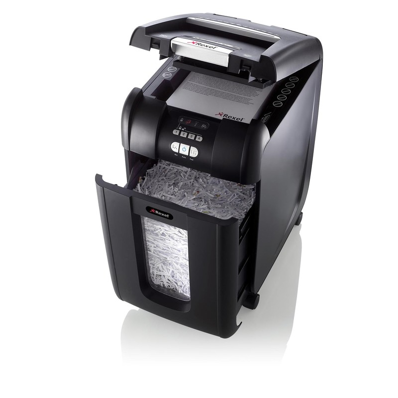 REXEL AUTO FEED AUTO+300X - компактная модель шредера с технологией автоматической загрузки документов. Загрузите документы в шредер, закройте крышку и занимайтесь своими делами. Предназначен для нечастого уничтожения большого количества документов. Уничтожает до 300 листов за 1 загрузку. При необходимости можно загрузить до 8 листов в отдельный паз. Уничтожает документы, скрепленные стандартными скобами и скрепками. Уровень секретности 3, размер фрагмента 4х40 мм. Выдвижная корзина объемом 40 литров, окошко для контроля за наполнением. Индикаторы наполнения корзины, открытой дверцы, перегрева двигателя. Код для блокировки крышки шредера. Предотвращает несанкционированное отркытие крышки во время уничтожения. Уничтожает кредитные карты и диски. Очень низкий уровень шума (меньше 60 дБ). Автоматический и механический реверс. Могут использоваться с мусорными пакетами.