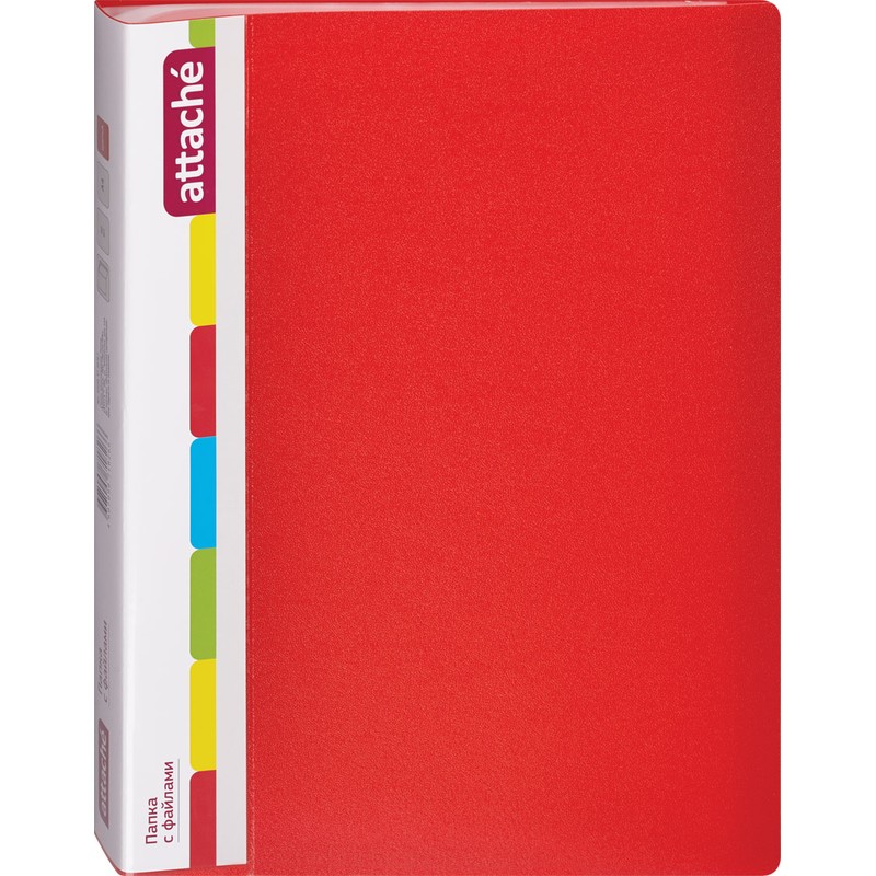Папка с файлами Attache предназначена для хранения материалов и документов формата А4, требующих упорядоченности и наглядного обзора: отчетов, презентаций, коммерческих и персональных портфолио. Изготовлена из пластика толщиной 0,7 мм красного цвета, имеет 40 прозрачных вкладышей, а также карман на корешке для сменной этикетки. Вмещает до 80 листов стандартной плотности. Преимуществом файловой папки является надежная сохранность документов в отличном состоянии без предварительной перфорации.