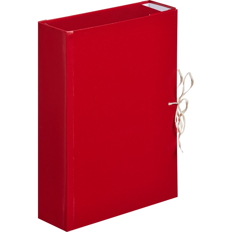 Архивная папка Attache формата А4 выполнена из плотного картона, покрытого бумвинилом (материал на основе ПВХ) красного цвета. Ширина корешка — 8 см. В закрытом виде фиксируется с помощью четырех завязок. Вмещает до 600 листов стандартной плотности.