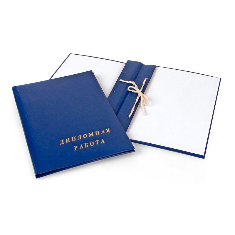 Адресная папка «Дипломная работа» выполнена из бумвинила синего цвета (слой ПВХ на бумажной основе). Надпись на обложку нанесена методом тиснения. Внутри расположена вставка с тремя отверстиями и шнуром для сшивания листов.