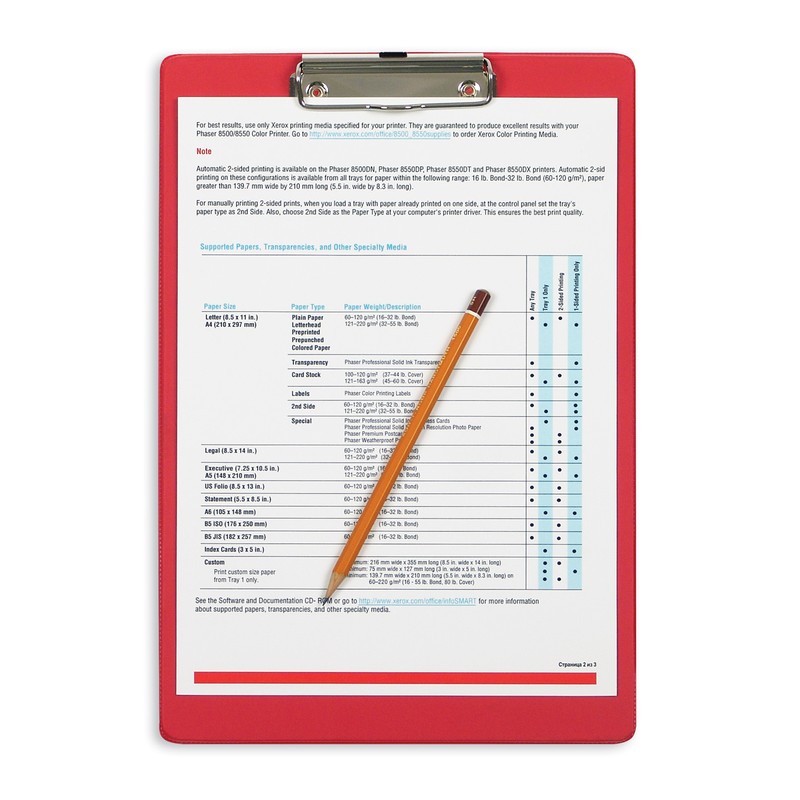 Папка-планшет изготовлена из плотного картона, покрытого пленкой ПВХ. Толщина — 2,7 мм. Формат А4. Цвет: красная. Есть возможность крепления планшета к стене. Возможно изготовление в корпоративных цветах (от 250 штук).