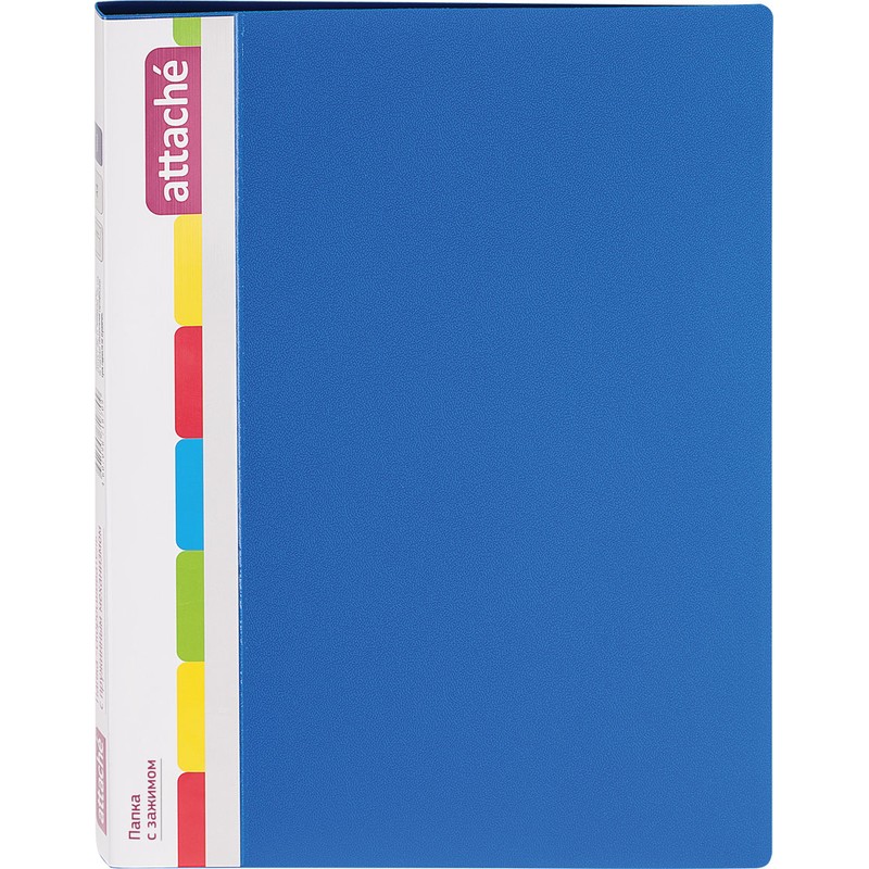 • Папка Attache формата А4 изготовлена из пластика синего цвета толщиной 0,7 мм. Оснащена металлическим механизмом с прижимом, который позволяет подшивать документы без предварительной перфорации. Ширина корешка — 17 мм. На внутренней стороне обложки есть прозрачный карман для документов, компакт-дисков, визиток. Папка вмещает до 150 листов стандартной плотности.