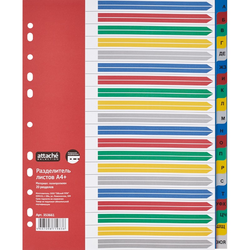 | Разделитель листов 20 цв.пласт. А4+, А-Я Attache Selection |