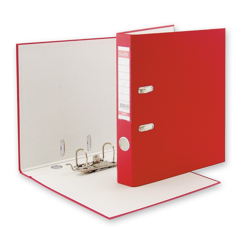 Папка-регистратор с арочным механизмом Bantex Economy изготовлена из плотного картона, с внешней стороны обтянута бумвинилом красного цвета. Внутренняя поверхность — бумажная. Формат А4. Прорези на внешней крышке папки удерживают ее закрытой даже при большом количестве документов. На корешке шириной 50 мм есть пластиковый карман со сменной двусторонней этикеткой и кольцо для удобства захвата. Папка-регистратор Bantex Economy вмещает до 350 листов стандартной плотности.