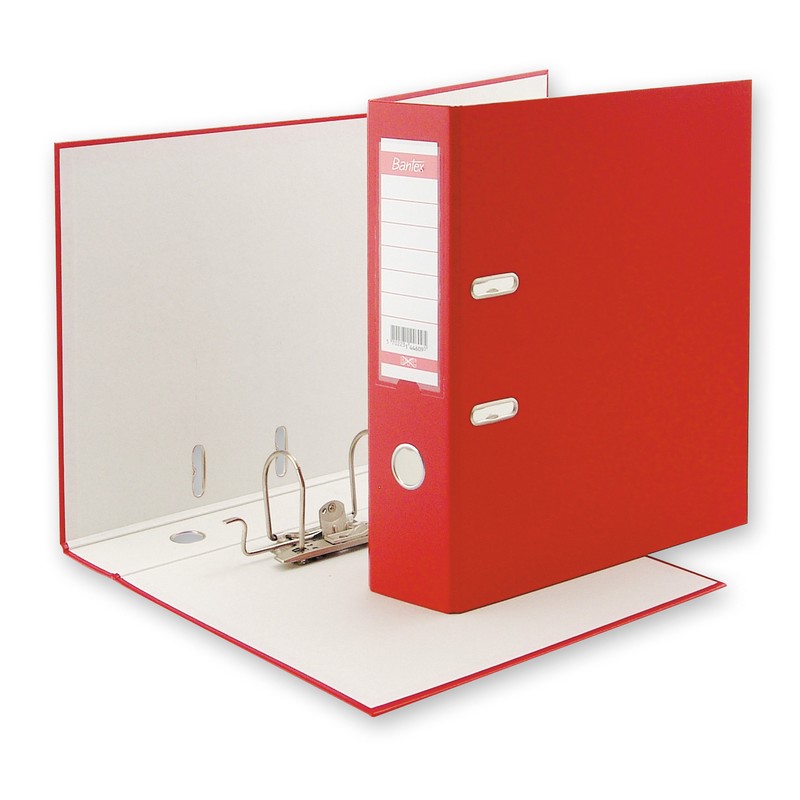Папка-регистратор с арочным механизмом Bantex Economy изготовлена из плотного картона, с внешней стороны обтянута бумвинилом красного цвета. Внутренняя поверхность — бумажная. Формат А4. Прорези на внешней крышке папки удерживают ее закрытой даже при большом количестве документов. На корешке шириной 70 мм есть пластиковый карман со сменной двусторонней этикеткой и кольцо для удобства захвата. Папка-регистратор Bantex Economy вмещает до 450 листов стандартной плотности.