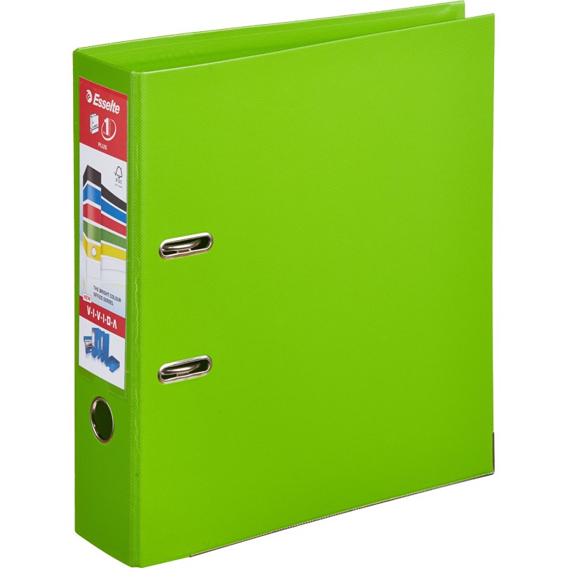 Папка-регистратор с арочным механизмом Esselte Стандарт Плюс изготовлена из жесткого картона, обтянутого с обеих сторон полипропиленовой пленкой цвета лайм. Ширина корешка составляет 80 мм, ширина папки на 15 мм превышает стандартную, что позволяет архивировать документы формата больше А4. На корешке есть пластиковый карман для этикетки. Папка-регистратор Esselte вмещает до 600 листов стандартной плотности.