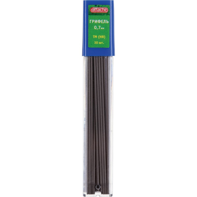 Сменный стержень микрографический Attache используется в механических карандашах. В пластиковом футляре 30 грифелей толщиной 0,7 мм. Твердость каждого — НВ.