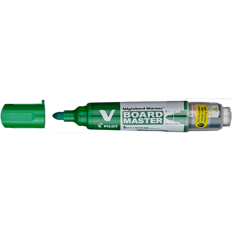 Маркер для досок PILOT WBMA-VBM-M-BG Маркер для белых эмалевых досок. Круглый наконечник. Пластиковый корпус. Толщина линии письма - 1-3 мм. Цвет: зеленый. Продукт серии Begreen, на 91% изготовлен из вторично переработанного пластика. Система визуального контроля наличия чернил. Жидкие чернила на водной основе с нейтральным запахом. Нетоксичны, не содержат ксилен.