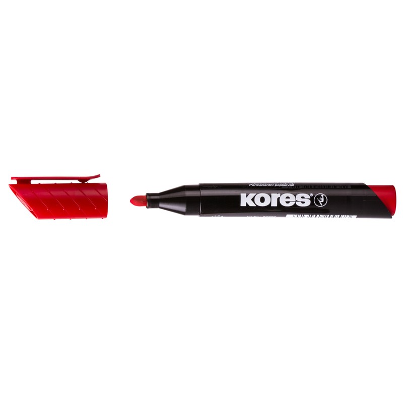 Перманентный маркер Kores 20937 подходит для письма на любых поверхностях. Эргономичный корпус изготовлен из пластика. Круглый наконечник обеспечивает толщину линии от 1,5 до 3 мм. Страна производства — Чехия. Нестираемые чернила. Наличие системы Cap Off. Цвет — красный.