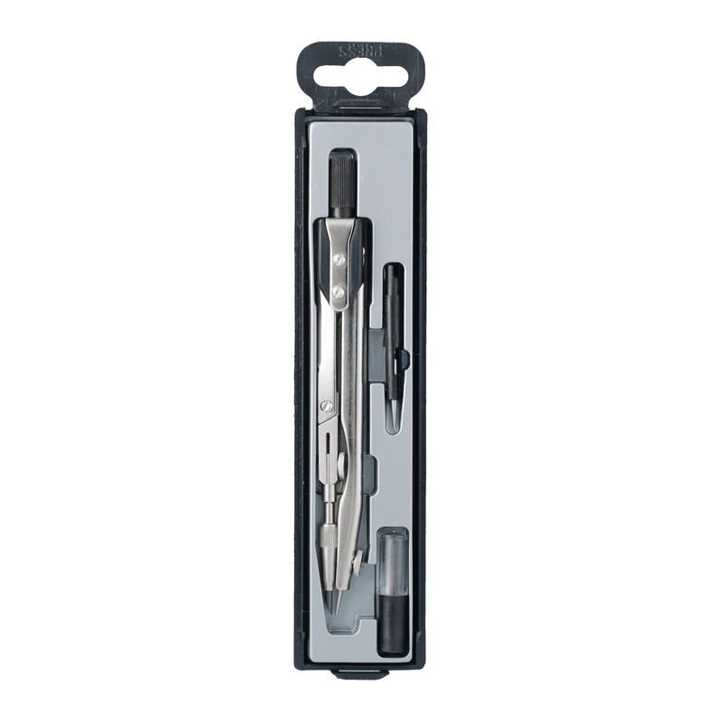 и пенала с запасным грифелем. Упакованы в черный пластиковый пенал с прозрачной крышкой и подвесом. Предназначен для школьников старших классов и студентов технических учебных заведений. Инструменты имеют никелированную поверхность. -